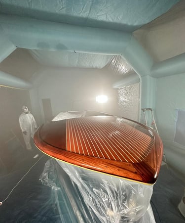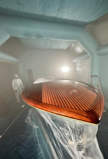 Ce protocole comprends la finition sous cabine et l'utilisation de pistolet à air comprimé professionnel de marque 3M spécifique aux vernis marines bi composant.